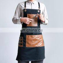 Factory Supply Waterproof Restaurants Women Custom Logo Leather Cooking Aprons Kitchen